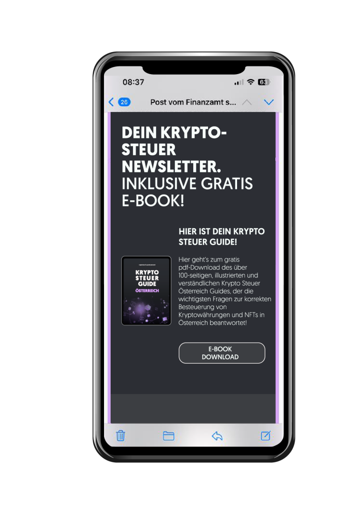 Zusätzlich bekommst du über unseren Newsletter immer die aktuelle Version unseres kostenlosen E-Books: Krypto Steuer Guide Österreich und unserer Checkliste für deinen Krypto-Mittelherkunftsnachweis!